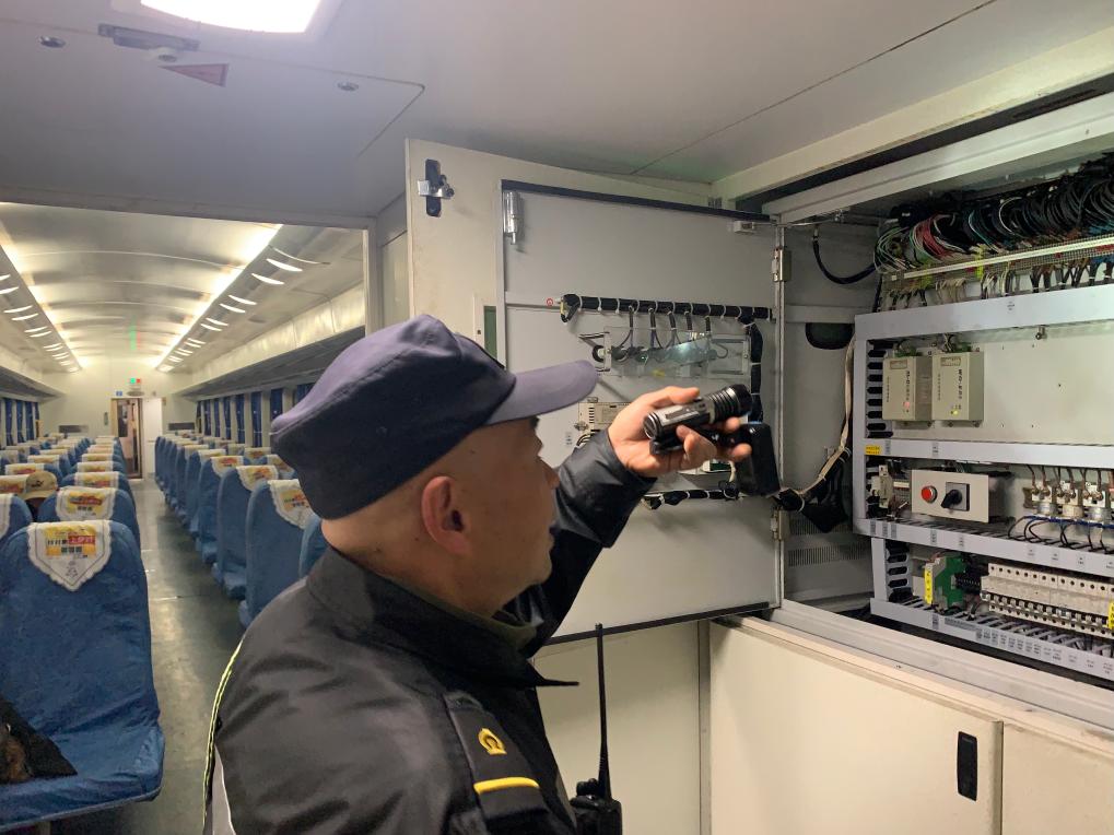 崔鸣涛正在检查列车上的电力设备。新华社记者熊轩昂 摄