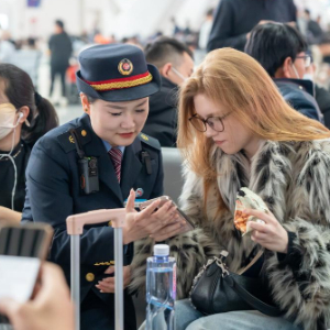 春运以来,广州南站每天有近2千名外国旅客乘车。为应对外国人越来越多的沟通需求,车站为售票窗口、检票口等岗位的工作人员配备了多语种翻译机,可以实时翻译十几种语言,并开展覆盖客运员、售票员等岗位的双语培训,为乘坐高铁的外籍旅客提供购票、乘车等指引。