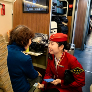 京沪高铁上,“90后”列车长韩茹在春节假期坚守岗位:面对带娃出行的父母,帮忙抱会儿孩子;看见独自出行的老人,细心询问是否需要引导……她和数万名铁路工作人员一道,为旅客提供周到服务。