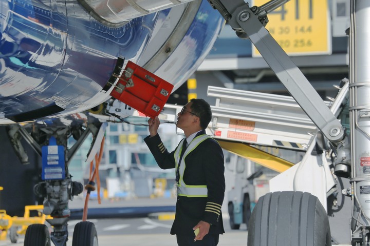 图为黄敏正在做飞行前的检查。(受访者供图)