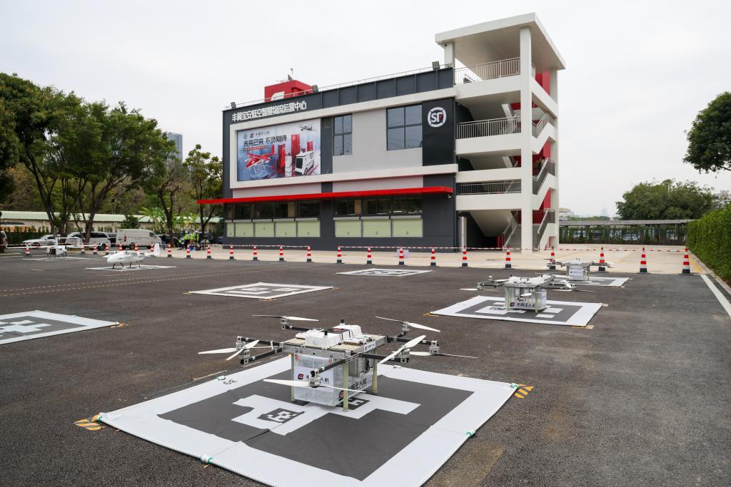 在丰翼宝安低空智慧物流运营中心,无人机停在起降区。新华社记者 毛思倩 摄
