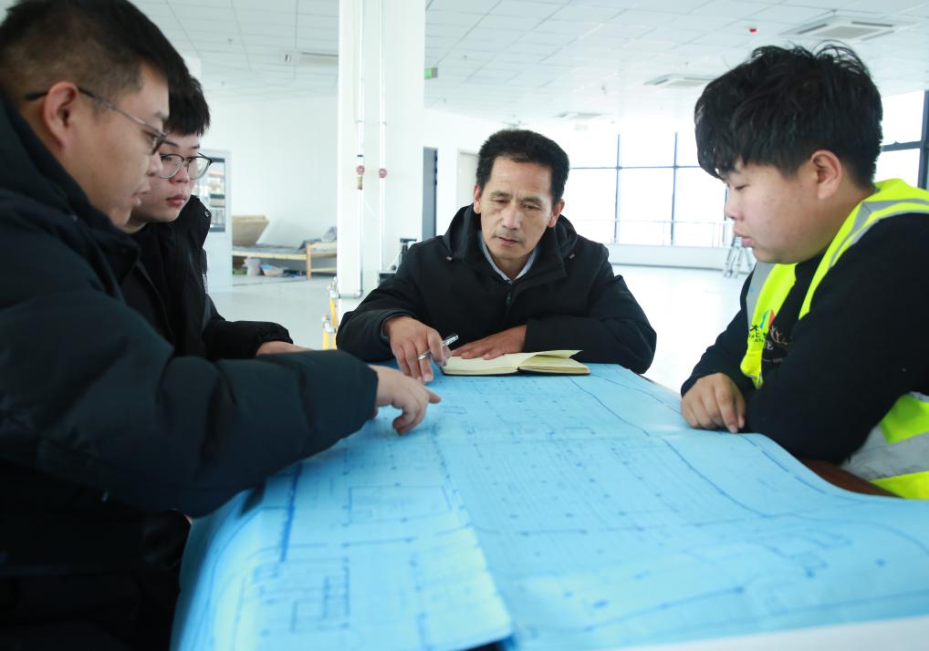 在项目部内,周培(右二)和工作人员对工程操作注意事项进行研讨。(受访者供图)