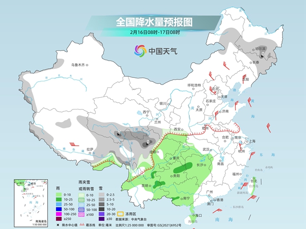 其中今天,内蒙古东北部、黑龙江中南部、吉林中东部、新疆西部山区、西藏东部、青海南部、川西高原等地部分地区有小雪或雨夹雪,其中,黑龙江南部、青海南部、川西高原北部等地部分地区有中雪,局地大雪。西南地区东部、江南西部、华南西部、海南岛东部、台湾岛东部等地部分地区有小雨,其中,湖南西部、贵州东部和西南部、云南东部、广西西南部等地部分地区有中雨。