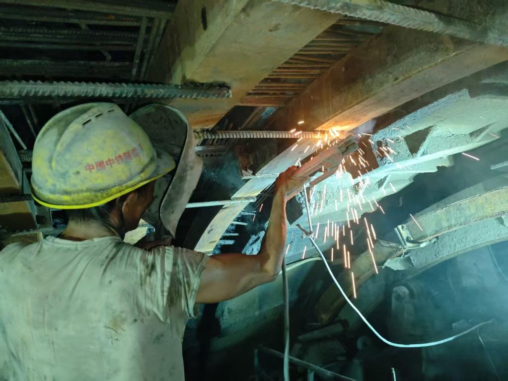 2月19日,滇中引水工程香炉山隧洞掌子面,建设者正在进行焊接作业。(受访者供图)