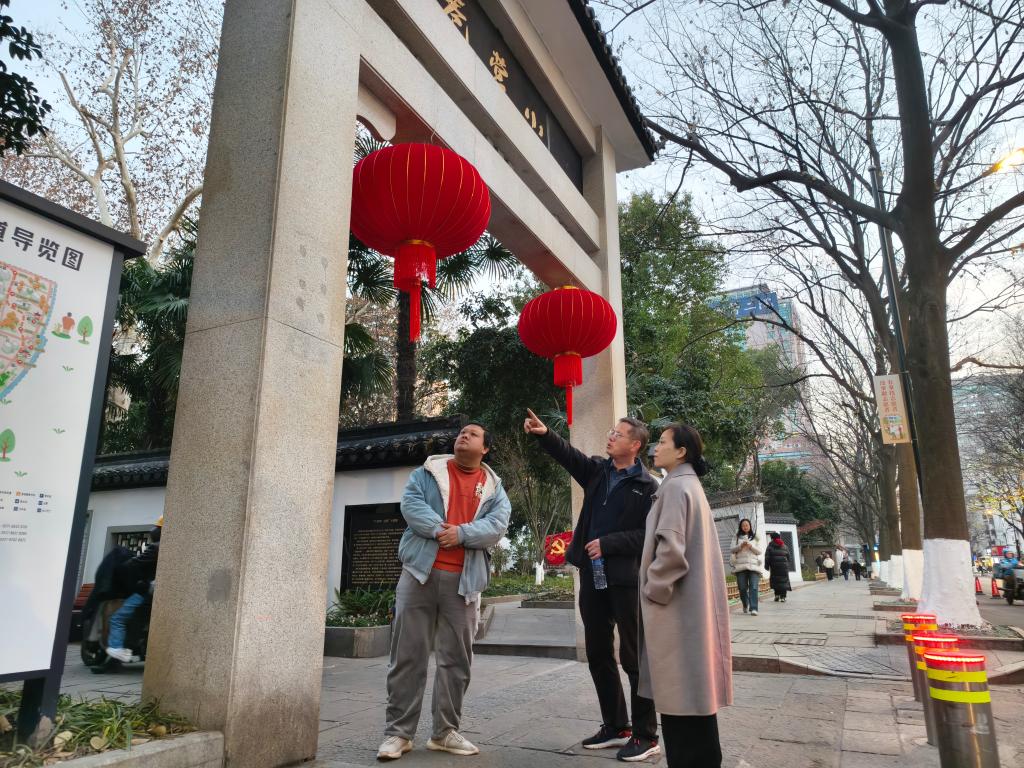 全国人大代表、浙江宇视科技有限公司研究院院长周迪(左二)在社区基层调研。(受访者供图)