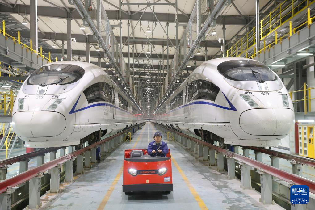 2025年1月22日晚,工作人员驾驶送料小车为检修库内的作业人员送去工具和配件。新华社发(许丛军摄)