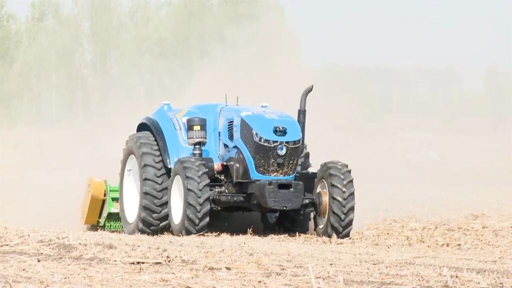 在吉林省公主岭市,一台无人驾驶拖拉机正在进行整地作业。新华社发