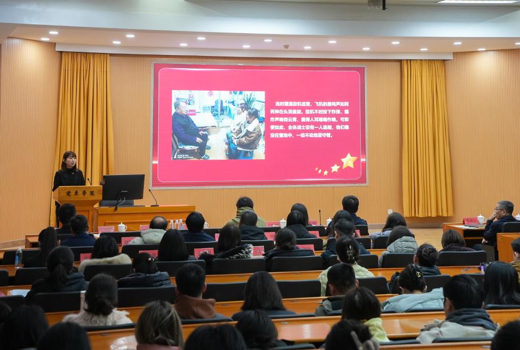 2月27日下午,辽东学院国际报告厅内,“烽火传承 青春寻迹”寻访抗美援朝老战士专项活动分享会在这里举行。这是辽东学院精心为学生举办的开学第一课,刚刚开学的学生们,仿佛被一种无形的力量所吸引,全身心地沉浸其中。