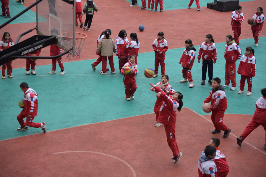 2025年2月26日,贵州省毕节市织金县第八小学的学生在课间打篮球。新华社记者 郑明鸿 摄
