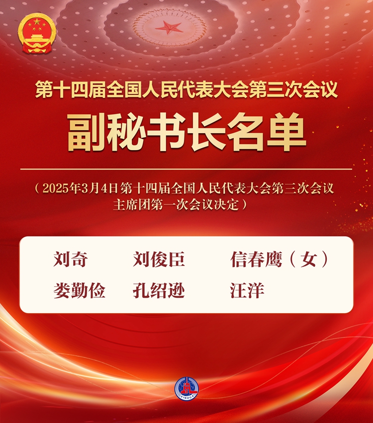 两会受权发布丨第十四届全国人民代表大会第三次会议副秘书长名单_2025全国两会大型融媒体专题_新华网
