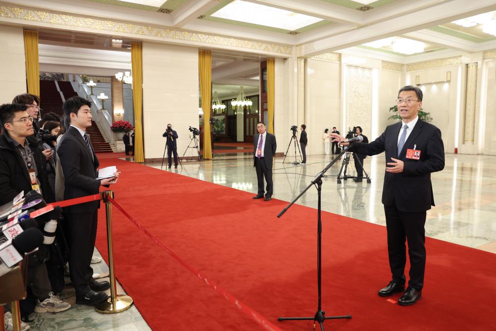 3月5日,第十四届全国人民代表大会第三次会议首场“部长通道”集中采访活动在北京人民大会堂举行。这是国家金融监督管理总局局长李云泽接受媒体采访。