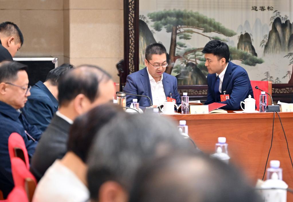 3月6日,海尼扎提·托呼提(右一)在北京的驻地与其他委员交流。