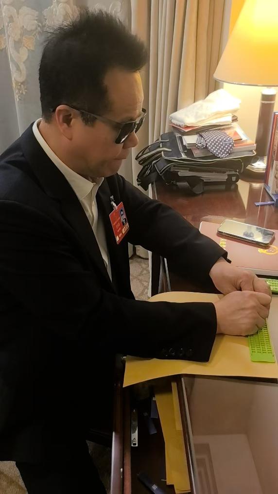 “我当人大代表第三个年头了,每年都有意想不到的惊喜,第一年是拿到盲文版的代表建议答复,第二年是摸到盲文版政府工作报告,今年则是了解到代表法修正草案里的这段话。”