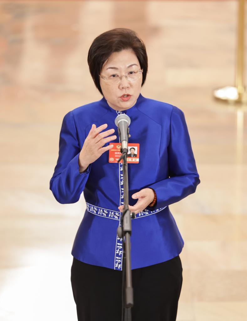 3月7日,全国政协十四届三次会议第二场“委员通道”集体采访活动在北京人民大会堂举行。这是全国政协委员徐晓兰接受媒体采访。