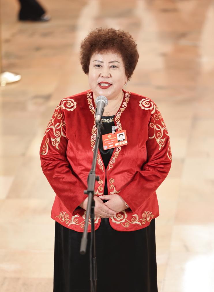 3月7日,全国政协十四届三次会议第二场“委员通道”集体采访活动在北京人民大会堂举行。这是全国政协委员徐凤芹接受媒体采访。