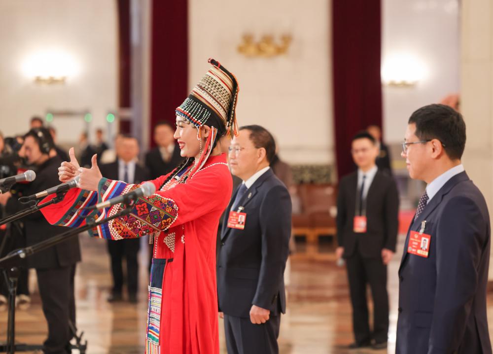 3月7日,全国政协十四届三次会议第二场“委员通道”集体采访活动在北京人民大会堂举行。