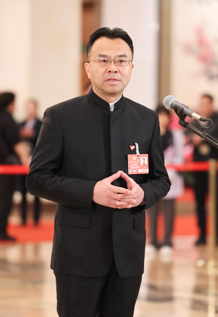 3月7日,全国政协十四届三次会议第二场“委员通道”集体采访活动在北京人民大会堂举行。这是全国政协委员羊毅接受媒体采访。
