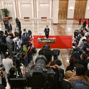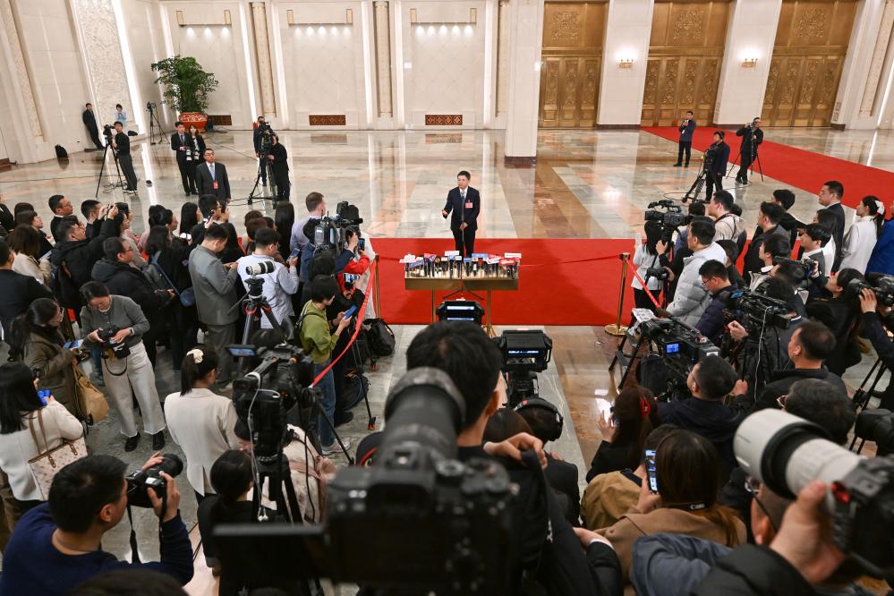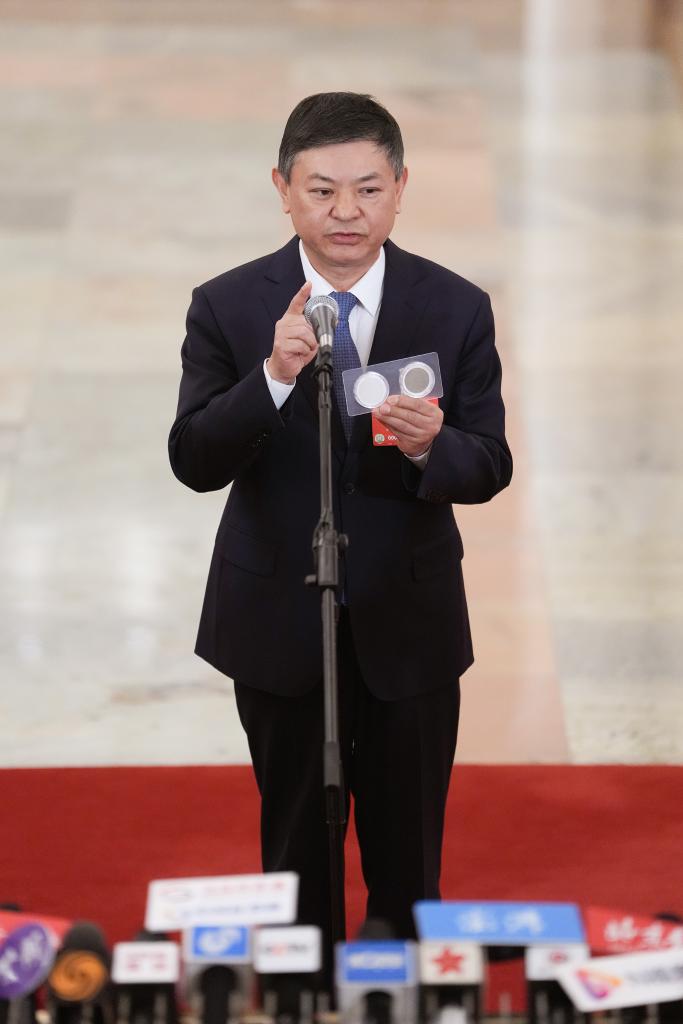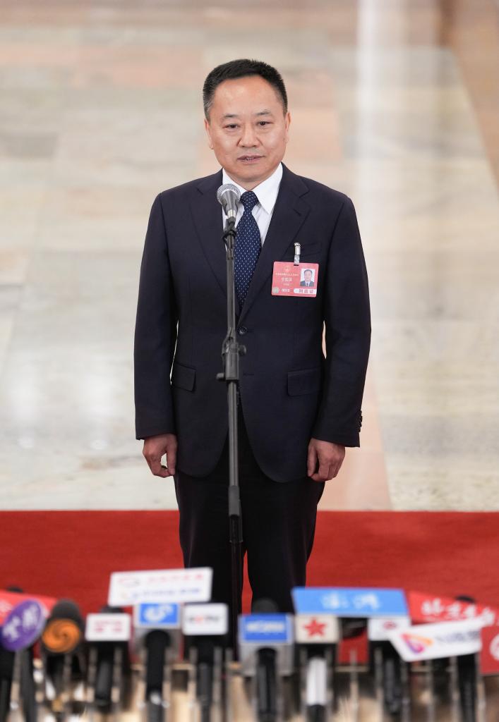 3月8日,第十四届全国人民代表大会第三次会议第二场“部长通道”集中采访活动在北京人民大会堂举行。这是水利部部长李国英接受媒体采访。