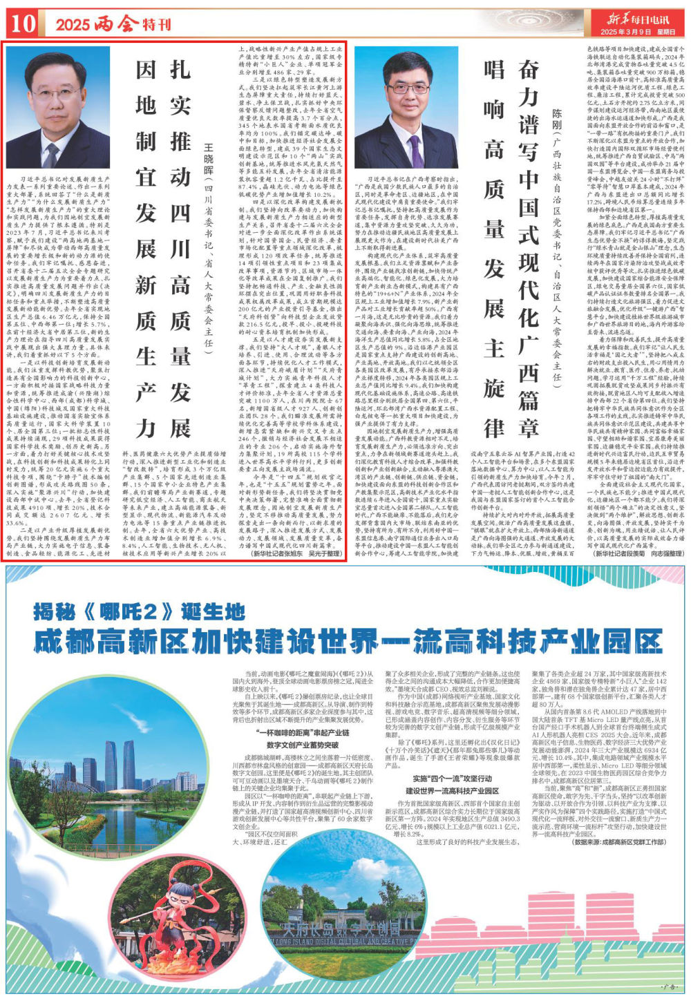 今年是“十四五”规划收官之年,也是“十五五”规划蓄势之年。面对新形势新任务,我们将坚决贯彻党中央决策部署,完整准确全面贯彻新发展理念,因地制宜发展新质生产力,坚定不移推动高质量发展,努力探索走出一条向新而行、以新求质的发展路子,深入推进发展方式、发展动力、发展领域、发展质量变革,奋力谱写中国式现代化四川新篇章。(新华社记者张旭东 吴光于整理)