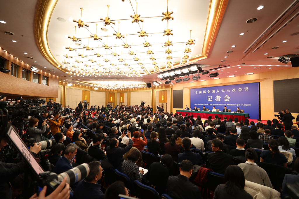 3月9日,十四届全国人大三次会议在北京梅地亚中心新闻发布厅举行记者会。民政部部长陆治原、人力资源和社会保障部部长王晓萍、住房和城乡建设部部长倪虹、国家卫生健康委员会主任雷海潮就民政、就业和社会保障、住房、卫生健康等相关问题回答中外记者提问。新华网记者 王翰林 摄