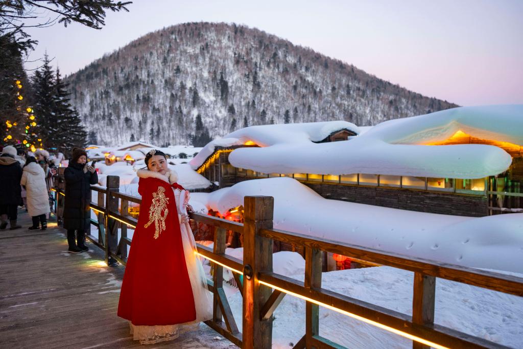 游客在“中国雪乡”景区拍摄写真。新华社记者谢剑飞 摄