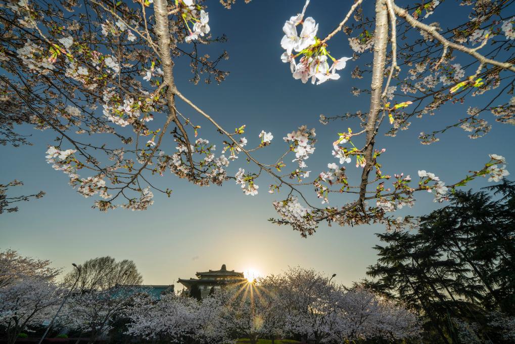 夕阳的霞光里,武汉大学的樱花闪闪发光