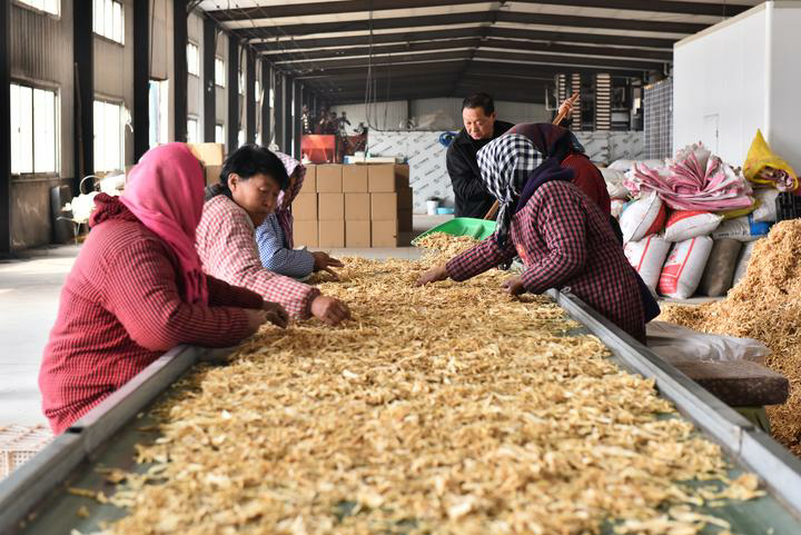 在河北省秦皇岛市青龙满族自治县,药农在挑拣药材中的杂质。(肖春图 摄)