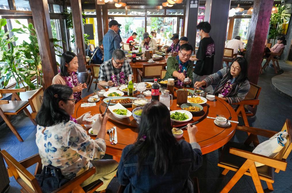 2025年2月19日,游客在西双版纳一餐厅用餐。新华社记者 陈欣波 摄