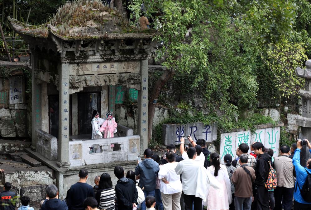2024年10月19日,演员在苏州虎丘山景区为游客表演昆曲。新华社发(杭兴微 摄)