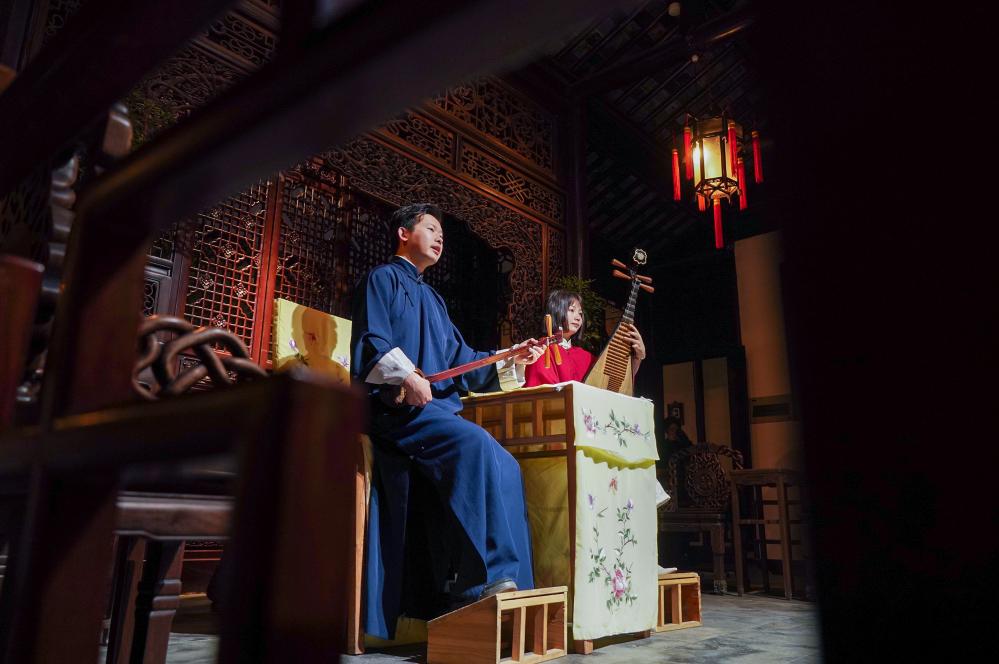 2023年4月5日,演员在苏州网师园内表演评弹。新华社记者 李博 摄