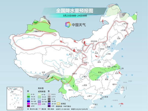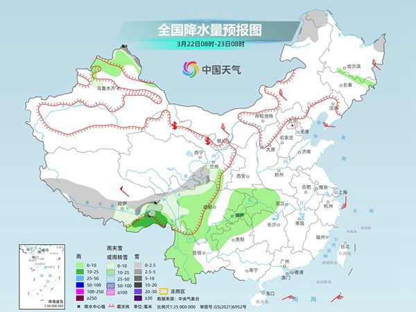 中央气象台预计,今天,新疆北疆、内蒙古东北部、黑龙江北部、西藏东部和南部、青海东部、甘肃南部、川西高原北部等地部分地区有小到中雪或雨夹雪,局地有大雪。新疆北疆、西藏东南部、西南地区大部、江汉西部等地部分地区有小到中雨,局地有大雨。