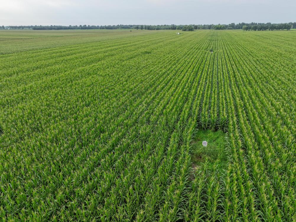 通辽市科尔沁左翼中旗敖包苏木朝伦敖包嘎查玉米单产提升项目区(无人机照片,2024年8月18日摄)。新华社记者 连振 摄