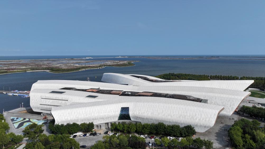 在中新天津生态城拍摄的国家海洋博物馆一景(无人机照片)。新华社记者李然 摄