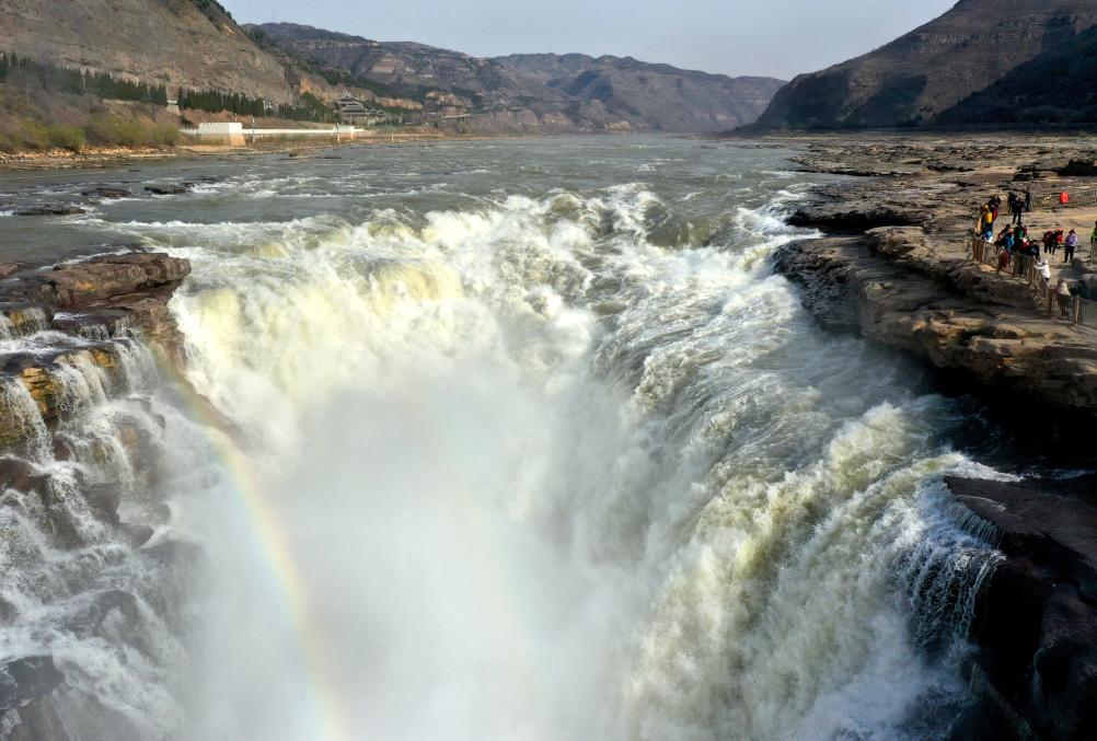 站在壶口瀑布岸边,只见两岸山桃花盛开,与飞流直下的瀑布相互映衬。来自山西太原的游客徐楠说:“我们本来想看壶口瀑布一年一度的‘桃花汛’,结果来了之后发现已经结束了,不过能看到壶口瀑布的‘清流飞瀑’美景也算不虚此行。”(记者王飞航)