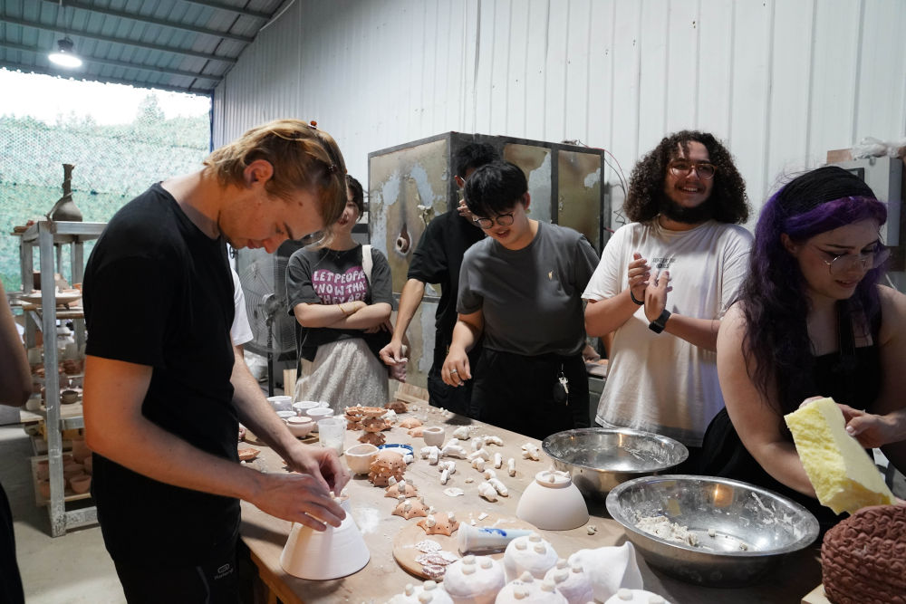 学生在景德镇陶瓷大学的一处窑炉旁一起创作、讨论(2024年7月17日摄)。新华社记者 周密 摄