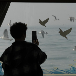 鸣笛声再次响起,家属们将骨灰缓缓倒入莲花形状的可降解骨灰罐里,投放到海水中。随着骨灰罐在海面由大变小,逐渐沉入海底,甲板上的哭声再也止不住。海风呜咽,数十只海鸥随船盘旋,后又向大海深处飞去。