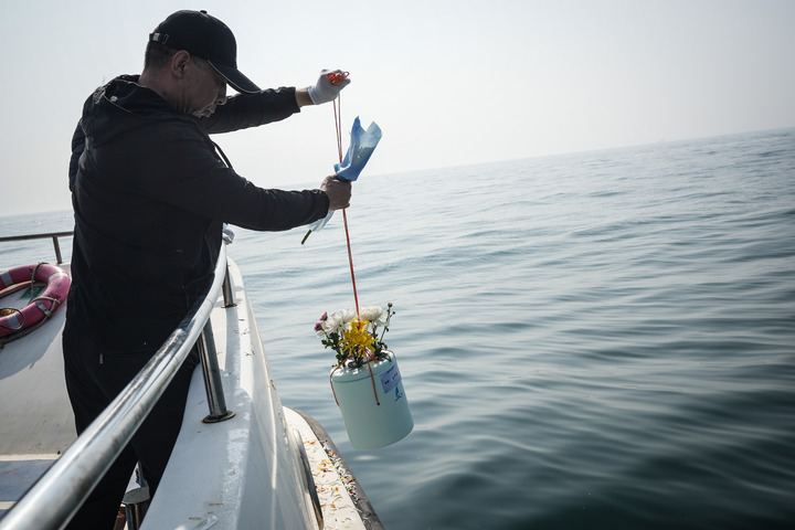 后来,陈琦意识到,海葬不仅需要船只,更需要一定的仪式感,体现对生命的敬畏。为了让海葬不再冷冰冰,陈琦对海葬船的船体进行重新装饰,把白花换成各种品种的花。每次海葬船抵达投放点后,会长鸣笛三声。“这鸣笛原本是船员意外落水时通知大家救人的,现在我们想表达的是,亲人也像船员一样落水了,以示重视。”陈琦说。