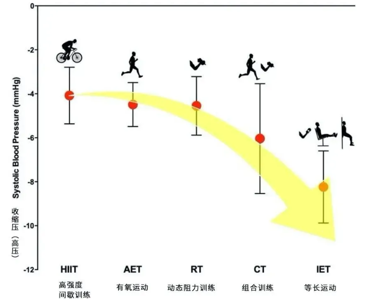 不同运动对收缩压(高压)的影响,研究截图