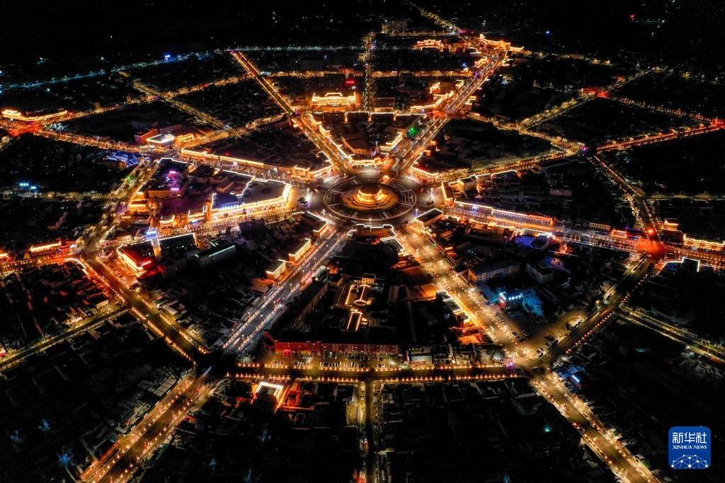 这是新疆伊犁哈萨克自治州特克斯县八卦城夜景(2021年1月2日摄,无人机照片)。新华社记者 丁磊 摄