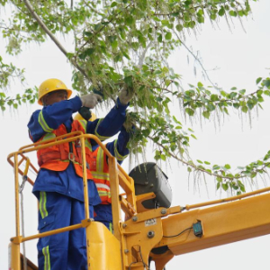 4月9日,北京的园林工作人员修剪杨树。新华社记者 鞠焕宗 摄