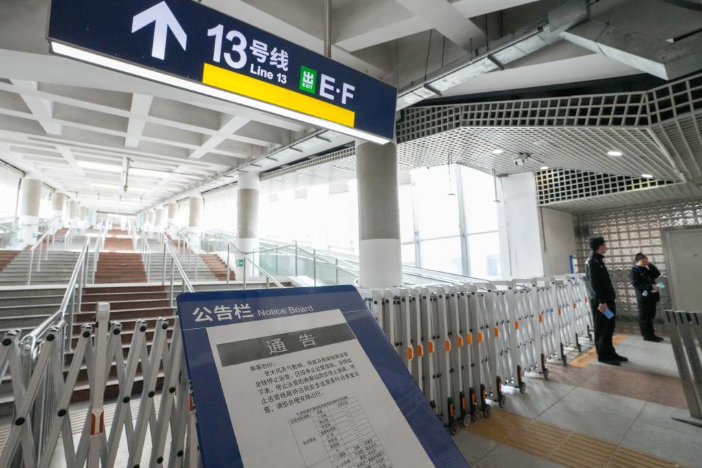 4月12日,北京地铁西直门站13号线换乘入口张贴了部分轨道交通线路因大风天气停运的通知。当日,我国北方多地出现大风降温天气。新华社记者 鞠焕宗 摄