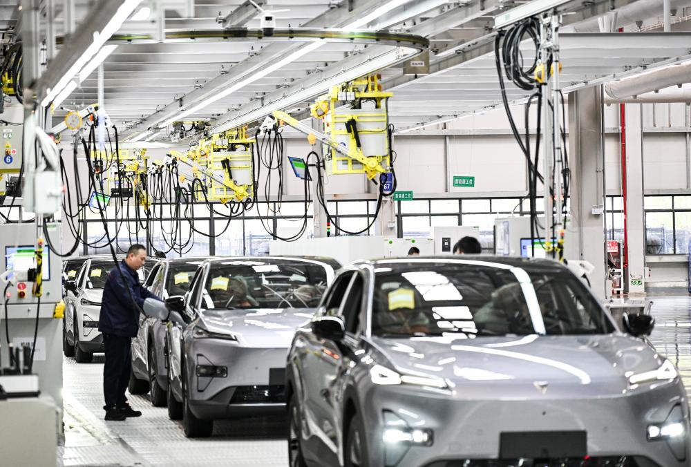 2025年3月6日,工人在位于重庆市渝北区的长安汽车数智工厂总装车间作业。新华社记者 王全超 摄