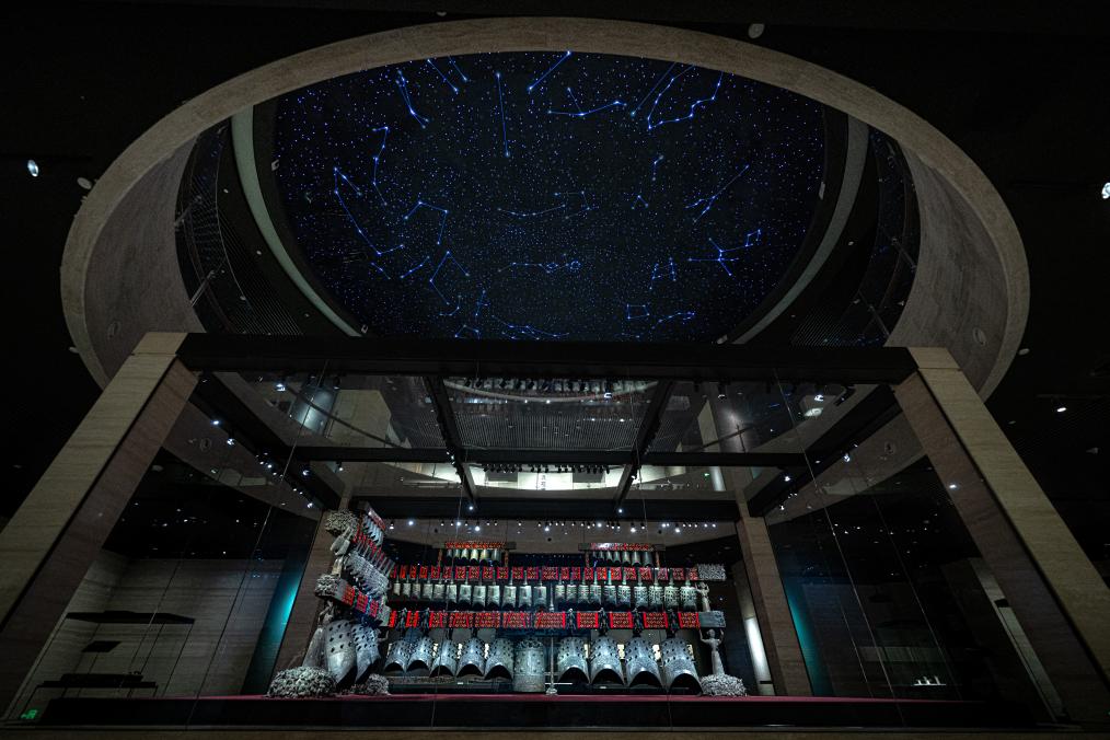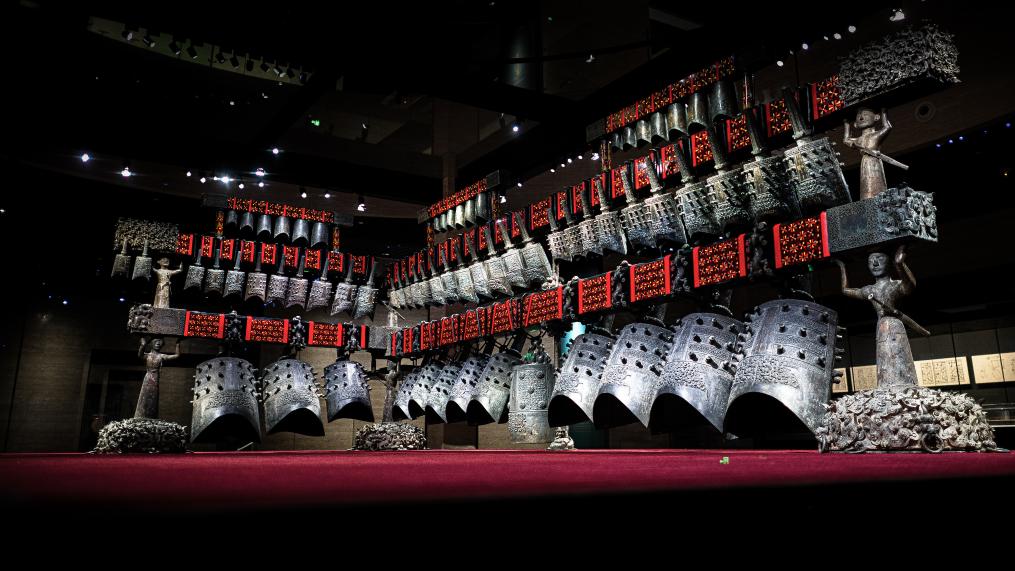 来到湖北省博物馆负一层的演奏厅,与曾侯乙编钟音色几乎一样的编钟复制件在这里奏响,与编磬、鼓、琴、瑟、笙、排箫等乐器共同演奏《二十八宿图》《楚商》《竹枝词》《金殿乐》《梁祝》《欢乐颂》等中外名曲,场场爆满。