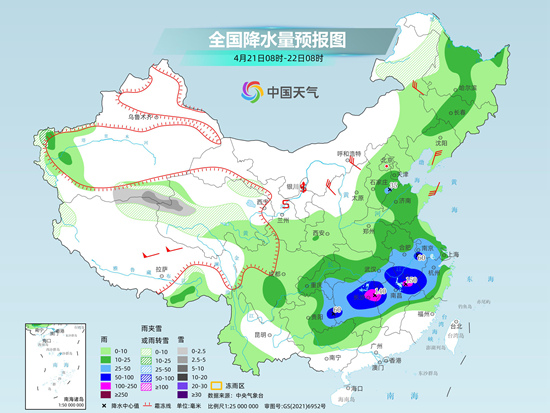 今天(4月21日),南方降雨进入过程最强时段,局地将遭遇大暴雨,需警惕强对流天气,同时,北方地区也将出现大范围降水。受较强冷空气影响,今明两天长江中下游及其以北地区气温下降明显并伴有大风天气,多地降温如换季。
