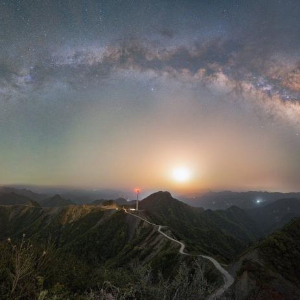 月亮在“巡天”过程中,每月总有那么一两天会运行至“银河拱桥”下方靠近中间的位置,恰巧组成一只夜空的“大眼睛”,拱桥是“眼眶”,月亮是“眼珠”,这一天文现象被天文爱好者们形象地称为“银河之眼”。由于银河升起的时间有早有晚,再加上月相的变化,每一次“银河之眼”出现的时间都会不同。