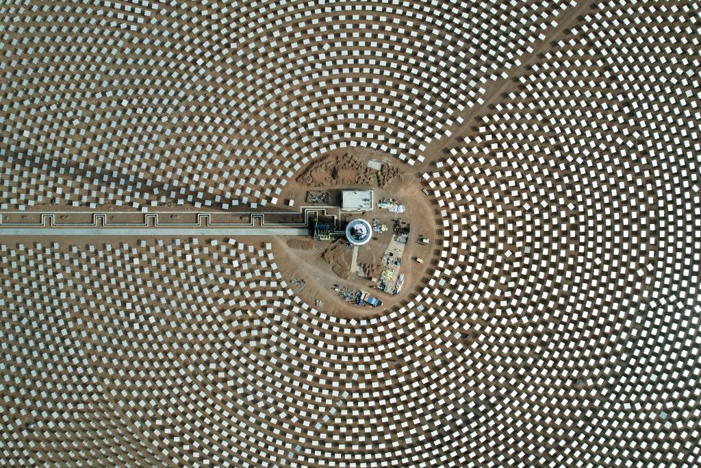近2.7万面定日镜以同心圆的方式紧密环绕