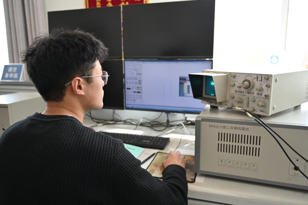 3月21日,气象站工作人员潘辉东在进行日常监测。新华社记者 齐芷玥 摄