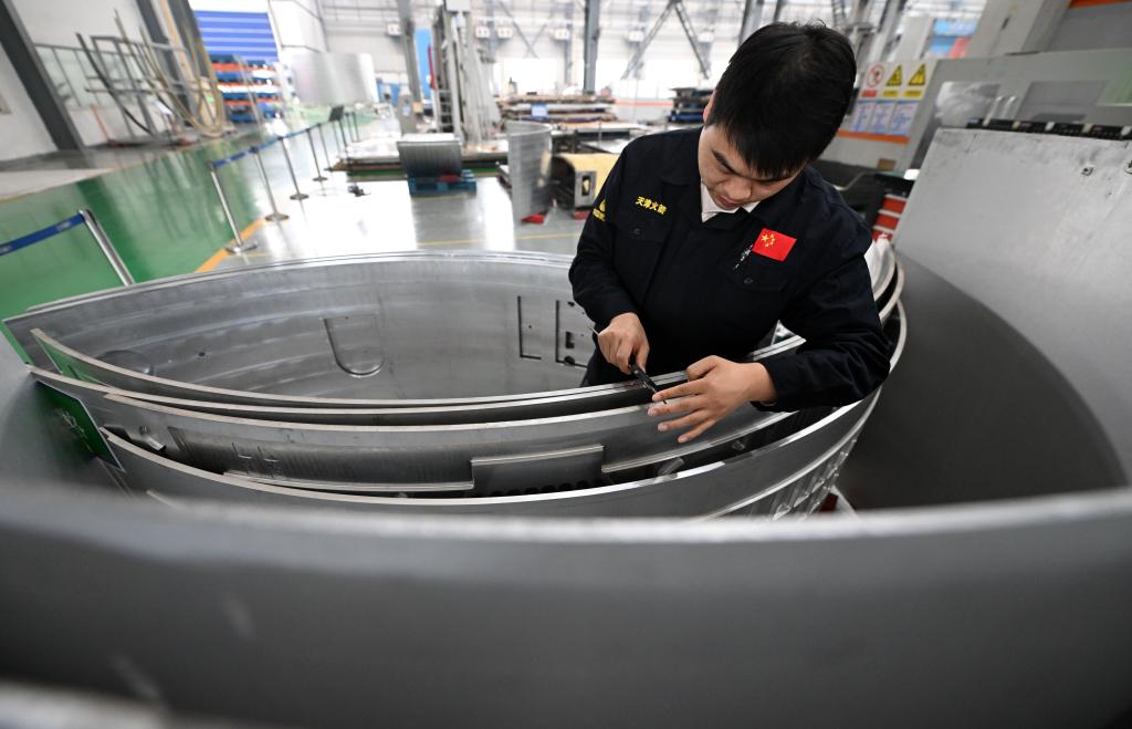新华社天津4月24日电(记者张宇琪)将手掌轻放在运载火箭贮箱壁板上,触之是合金的冰冷,感之实为中国航天的炽烈宏愿——想到它会直上九霄至浩瀚太空,记者不由得失了神。