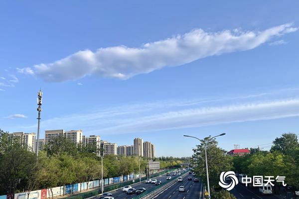 今晨,北京蓝天在线,风力较强。(图/中国天气网 王晓)