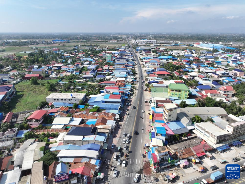 这是4月21日在柬埔寨干丹省拍摄的41号公路(无人机照片)。新华社发(尼多拉摄)